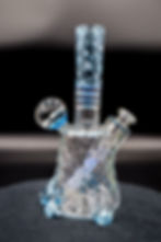 Chaka is a Maine-based glass artist who has developed a style that mimics the natural formations of ice and snow. He began working with glass 20 years ago in western Massachusetts. His initial focus was on glass jewelry and sculpture but soon moved to hollow work and pipemaking. He has taken classes and workshops under many teachers and mentors including Robert Mickelsen, Loren Stump, Eusheen Goines, Milon Townsend and Dan Coyle, to name a few. The premise behind his current work is that glass can be appreciated as a medium through its relationship with the maker. Glassblowing being a process of melting and freezing, adding and subtracting is well represented through the metaphor of ice and its phase change to water. Chaka views his process as the most important part of the work, with the finished product to be appreciated by his collectors and invite curiosity of that process. He currently works and resides in Portland, Maine.